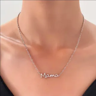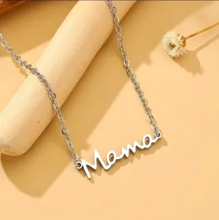 Vendo elegante collar con la palabra Mama en acero inoxidable. - Diseño de cadena fina. - Colgante con acabado plateado.