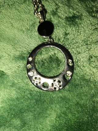 Collar largo plateado con medallón de piedra negra, totalmente nuevo a estrenar.