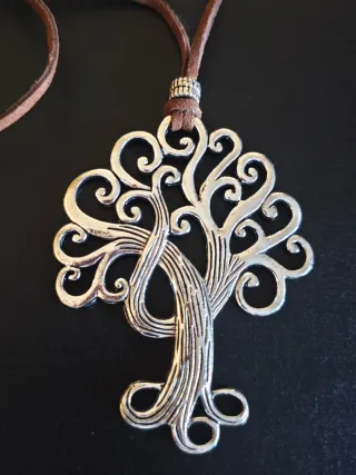 Collar con un precioso Árbol de la Vida plateado, el cordón marrón mide unos 77 cm + extensión. El colgante mide 7 cm de alto x 5'7 cm de ancho, es de aleación de zinc. Se recoge en mano en Alcorcón (Madrid), o se puede enviar a través de la App de Wallapop. También atiendo whatsapp 644 310 017