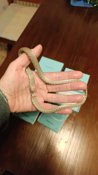 Elegante conjunto de joyería Tiffany & Co. que incluye una pulsera y un collar. - Diseño de malla - Cierre de seguridad - Cajas originales - Comprado en Londres