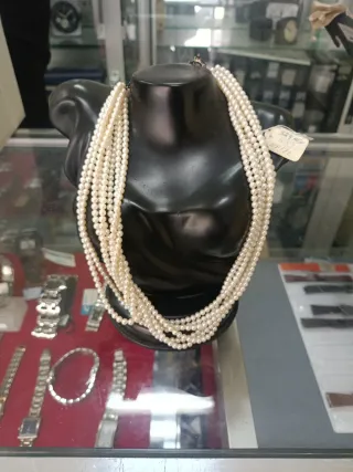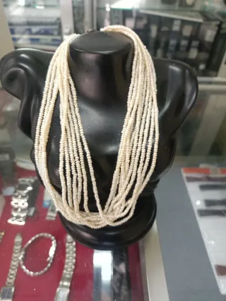 Elegante collar compuesto por múltiples hilos de pequeñas perlas de río. El cierre es de plata. - Perlas de río. - Cierre de plata.
