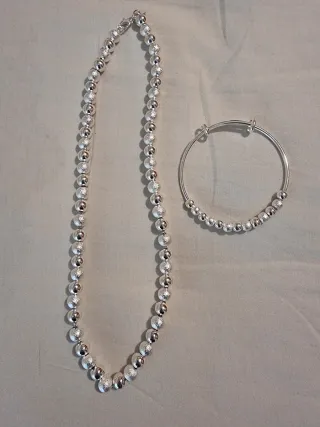 Collar y pulsera plateados