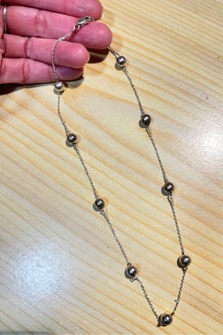 Elegante collar con un diseño delicado y moderno. - Cadena fina plateada. - Adornado con pequeñas bolitas. - Cierre seguro.