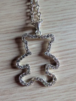 Elegante collar con un diseño de oso adornado con brillantes. La cadena es fina y delicada. - Colgante con forma de oso. - Detalles de brillantes en el contorno del oso.
