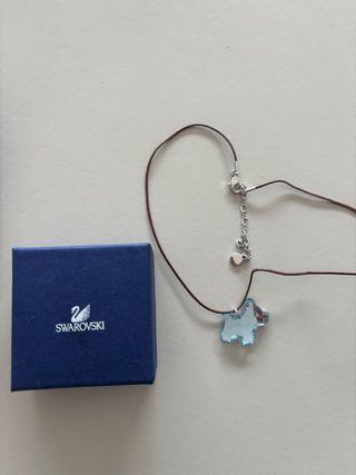 Elegante cadena plateada Swarovsky con colgante en forma de estrella adornado con pequeñas piedras brillantes. En el cierre está el cisne de la marca. Sin estrenar. La caja no es la original. La cajita de estrella dorada NO es Swarovsky. Es de otra marca y la aprovecho para una bonita presentación y un envío seguro.