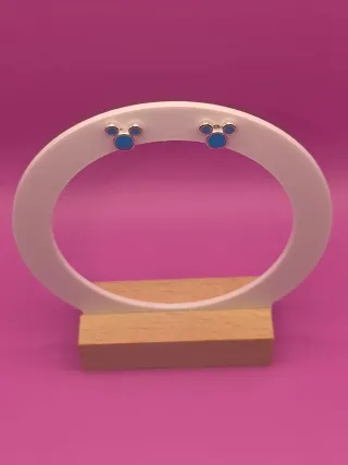 Conjunto de pendientes y collar con diseño inspirado en Mickey Mouse. - Plata 925. - Detalle en esmalte azul. - Cierre de mariposa en los pendientes.