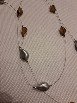 Collar largo de dos vueltas con cuentas plateadas e imitación miedra con alambre muy fino