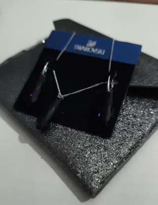 Conjunto original de Swarovski, compuesto por collar y pendientes a juego. ✨ Cristal en tono morado oscuro, elegante y muy favorecedor ✨ Poco uso, en muy buen estado ✨ Cadena y cierres en tono plateado ✨ Diseño clásico y atemporal No conservo la caja original, pero el conjunto es 100 % auténtico (ver detalles y acabado en las fotos). Ideal para eventos, ocasiones especiales o para dar un toque sofisticado al día a día.