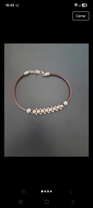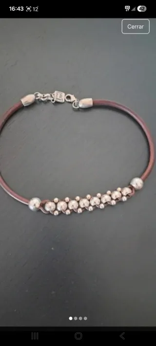 Elegante collar de la marca Uno para mi, combinando cuero y detalles plateados. - Diseño con cuentas de plata. - Cierre de mosquetón.