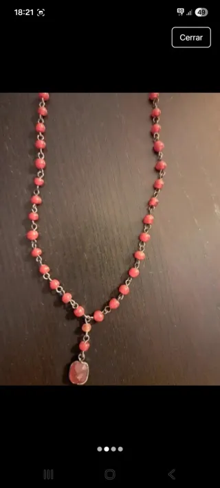 Elegante collar con cuentas de coral rojo y detalles plateados. - Diseño único con piezas de coral. - Cadena metálica con acabado plateado. - Cierre seguro y discreto.