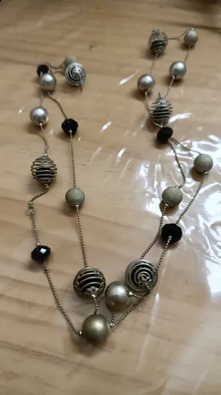Collar largo vintage plateado y negro