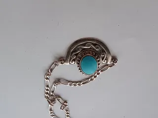 Elegante collar de plata con un detalle central de turquesa. - Diseño con colgante semicircular. - Cadena tipo Figaro.