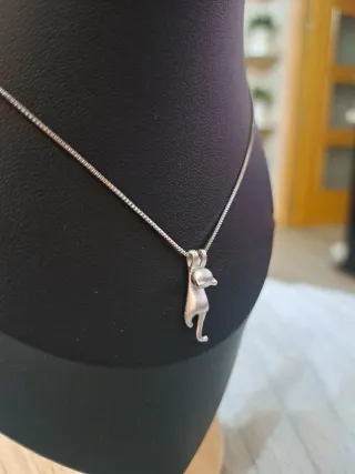 Cadena y colgante Este collar presenta un encantador colgante con forma de gato. 3 unidades en stock, los 3 por 30€ Plata 925 - Diseño de gato colgante. - Cadena fina y delicada.