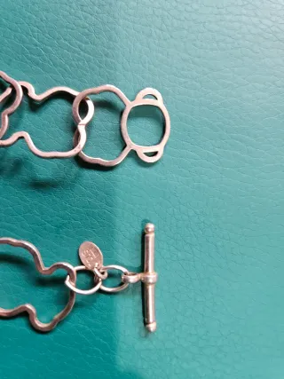 Collar de la marca TOUS de plata de primera ley (925). Diseño de eslabón calado repetido en forma de oso. Usado, en buen estado. Largo: 80 cm. Cierre de tipo T-bar. Incluye bolsita original TOUS.