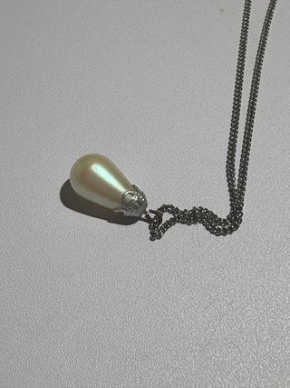 Elegante collar vintage con una perla de agua japonesa. La cadena es de plata. - Perla con forma de lágrima. - Cierre de mosquetón.