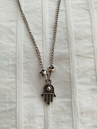 Collar de plata con colgante de mano de Fátima sin estrenar.