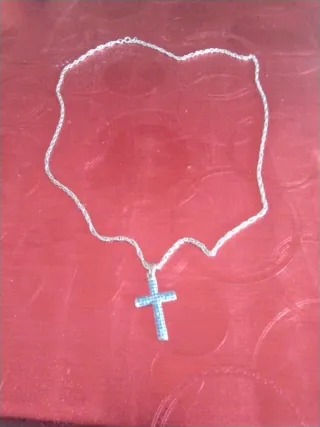 Elegante collar con un colgante en forma de cruz. La cadena y colgante son de color plateado. 1 cadena 5€,las 3 por 12€ -Cadena de eslabones.