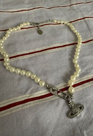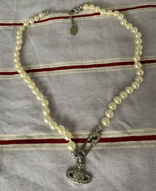 ⭐️Envio rápido Vivienne Westwood Lucrece Pearl en plateado, se vende porque coleccionó joyas y ya tengo muchas de esta marca, necesito algo de dinero para estos dias. Envío con el embalaje. Es un collar de perlas con detalle de imperdible plateado y colgante con brillos. Detalles: • Baño en tono plateado con acabado pulido • Cierre de mosquetón • Peso: 5 g • Longitud total: 44 cm • 51 perlas de 6 mm cada una • Colgante orbe: 1,75 cm x 1,8 cm