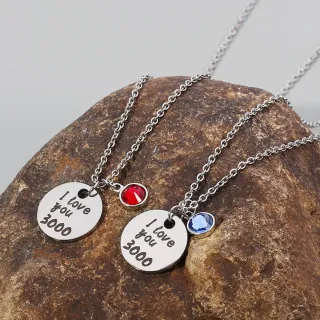 Collar con la frase I love you 3000. Cadena color plateado Acero inoxidable Con accesorio rojo y otro en azul No se ponen feos, ni se les va el color Entrega en mano