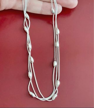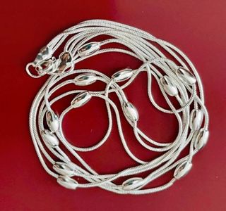 Elegante collar de plata 925 con varias cadenitas y detalles ovalados que mide 45 cm de largo. - Diseño delicado y moderno. - Cierre de seguridad. - Ideal para uso diario o eventos especiales.
