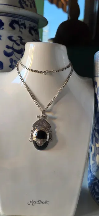 Elegante collar de plata con un llamativo colgante de diseño azteca. El.colga te no lleva marca .pero da plata 925 - Colgante con piedra central negra. - Cadena de plata con cierre seguro. - Diseño detallado y artesanal. 🌍POR FAVOR CUALQUIER DUDA PREGUNTA 🌍TENEMOS PRECIOS FIJOS (LEER) 🌍TAMBIEN ENTREGAMOS EN MANO 🌍NO RESERVAMOS . 🌍ESTO ES NUESTRO NEGOCIO .NO UN CAPRICHO 💖 LA FOTO REFLEJA EXACTAMENTE LA.PIEZA