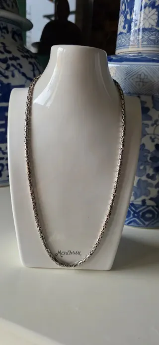 Elegante collar de plata de ley con diseño bizantino. Peso en las últimas fotos - Material: Plata de ley. - Estilo: Cadena bizantina. - Acabado: Brillante. Pesa 46 gramos . LA IMAGEN REFLEJA SU ESTADO NO SE ACEPTAN OFERTAS NI REBAJAS PREGUNTA LO QUE NECESITES Aviso a comerciantes .no vendo a el peso Para eso esta los compro oro de todos los barrios
