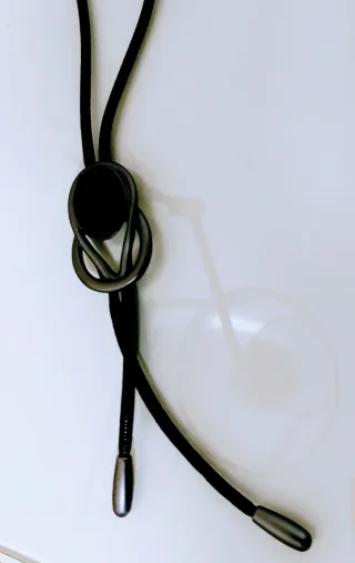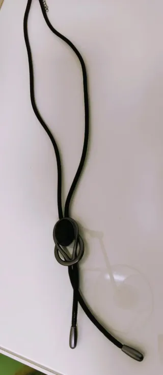 Collar ajustable con un diseño moderno y elegante. La pieza central presenta un nudo estilizado. - Cordón negro. - Cierre y detalles metálicos plateados. - Diseño unisex.
