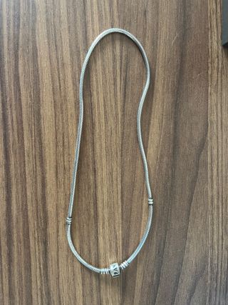 Elegante collar de la marca Pandora, con cadena tipo serpiente. Se vende sin charms. Cierre de mosquetón. 40 cm.