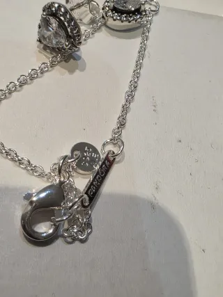 Elegante collar de la marca Pandora, con un diseño delicado y moderno. - Cadena fina con baño de oro y plata. - Colgante central en forma de corazón. - Pequeños detalles de brillantes a lo largo de la cadena. - Cierre ajustable para mayor comodidad.