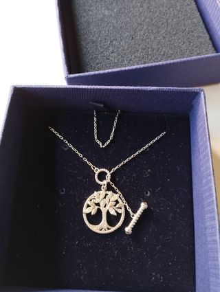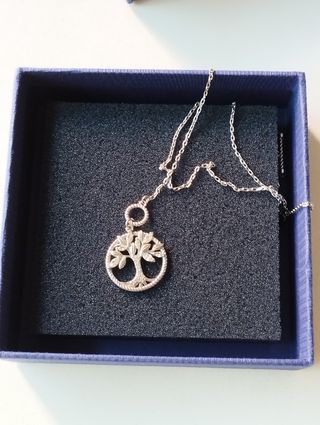 Precioso collar Swarovski de rodio. Nuevo, sin uso. Se entrega en su caja original. - Elegante diseño con dije de árbol de la vida. - Cadena fina y delicada. - Cierre de tipo mosquetón.
