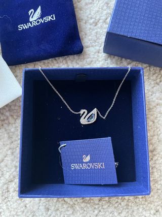 Precioso collar de Swarovski, modelo cisne, con un elegante acabado en plata y un detalle de cristal en tono azul. Es perfecto para cualquier ocasión hazle un regalo especial a tu pareja o madre para estas navidades. Estado: Nuevo con etiquetas Incluye el set completo para su presentación y conservación: • Caja original de Swarovski • Bolsita de terciopelo (para proteger el collar). • Tarjeteros/certificados de autenticidad. • Bolsa de la tienda (ideal para llevar regalo). •Material Idéntico al original de acero inoxidable la mejor calidad del mercado.