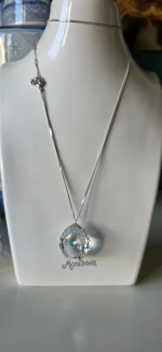 Elegante collar de la marca Swarovski con un colgante de cristal tallado. - Diseño con cadena plateada. - Colgante de cristal facetado. - El collar es largo. Incluye caja y bolsa