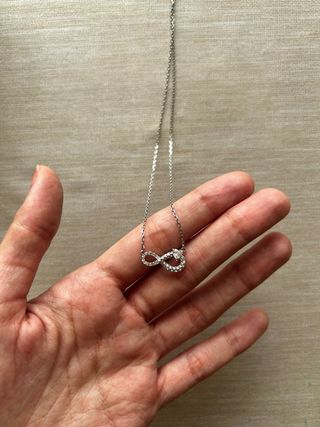 Esta sin estrenar y tiene el certificado de autenticidad. Diseño de símbolo de infinito. Incrustaciones de cristales. Cadena fina plateada.