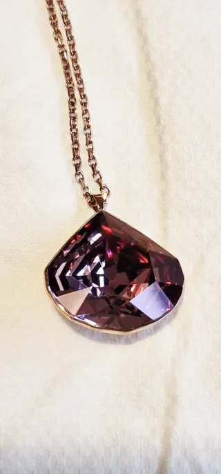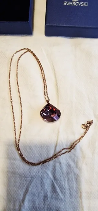 Elegante collar de la marca Swarovski con un colgante de cristal en tonos rosa y fucsia. - Cadena de metal en tono oro rosa. - Colgante con múltiples facetas que reflejan la luz, es precioso y muy especial de la marca Swarovski, un diseño muy peculiar que eleva cualquier look. - Casi nuevo, muy poco uso. Envío cuidadosamente en su caja Swarovski. El precio de compra fueron 129€. Visita otros artículos que tengo en venta.