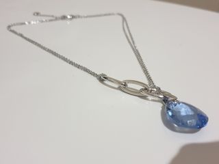 Colgante Swarovski en plata y piedra azul.Queda fino y bonito. Más en mi perfil.Hago descuento por la compra de más de un producto.