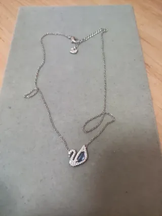 Elegante collar con un diseño de cisne. - Detalle de cristales brillantes. - Colgante con piedra azul central.