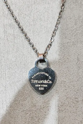 Elegante collar de Tiffany & Co. con un delicado colgante en forma de corazón. - Diseño clásico de corazón. - Cadena fina y plateada.
