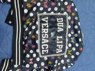 Este disfraz de Aitana( Versace Dua Lipa) es una pieza llamativa y única. Hecho por una modista con la tela similar. - Diseño con lunares blancos y estampado de mariposas y mariquitas. - Detalle de encaje negro en tirantes y bordes. - Etiqueta Dua Lipa Versace bordada en el centro. Es similar al que llevo Aitana en su concierto de los 40 Ward Music. Utilizado solo una vez para una actuación. Único desperfecto que dos letras de han despegado. Regalo collar de mariposas. Magnífica imitación del traje original para amantes de Aitana.