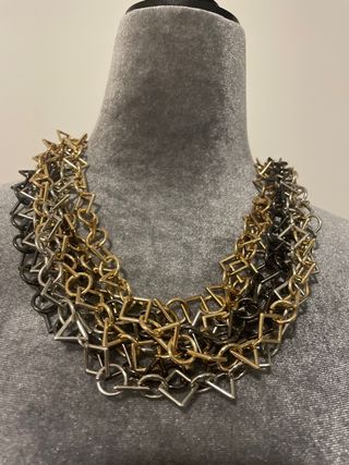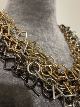 Collar de Zara con un diseño moderno y llamativo, combinando tres tonos metálicos. - Diseño de eslabones entrelazados. - Combinación de colores dorado y plateado. - Estilo escultural.