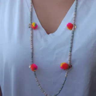 Collar trenzado con cuentas de varios colores. Es muy ponible y combina fácilmente. - Diseño con cuentas tubulares. - Cierre de mosquetón.