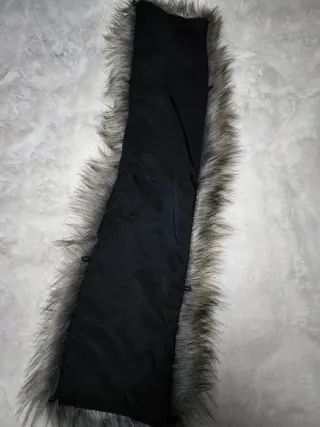 Bufanda o collar de pelo sintético con un diseño elegante. - Material: Pelo sintético. - Combinación de colores: negro y gris.