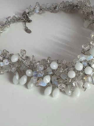 Elegante collar de Zara con un diseño delicado y adornado con cuentas. - Diseño con cuentas en blanco y tonos plateados. - Cierre ajustable para mayor comodidad.
