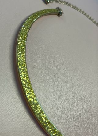 Collar con un diseño moderno y llamativo, perfecto para añadir un toque de brillo a tu atuendo. - Acabado con purpurina. - Cadena ajustable para mayor comodidad. -color dorado brillante