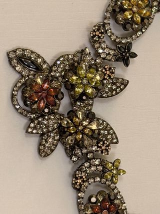 Vendo collar de Zara con motivos florales y pedrería nuevo a estrenar. Collar elegante y atemporal para combinar tanto con look sofisticados como de sport. Lleva gargantilla en la parte de atrás para poder ajustarlo a la medida. Es de color oro viejo