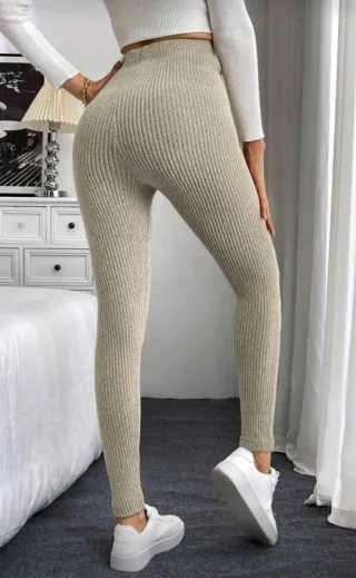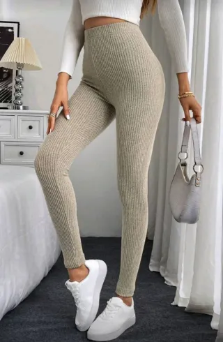 Leggings de canalé en color beige. Tienen cintura alta y la tela es muy elástica y cómoda. Es una talla M-L, pero realmente valen también para S-M. Al ser tan elásticos, se adaptan muy bien al cuerpo. Están como nuevos, puestos una vez. 📍Entrega en mano en Collado Villalba o envío.
