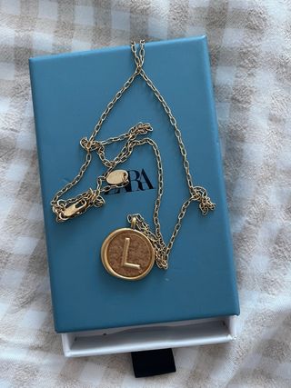 Collar dorado con inicial L. No es de oro.