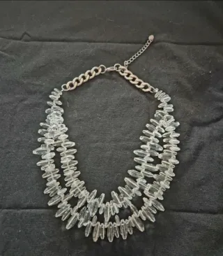 Elegante collar de Zara con un diseño que imita el cristal. Su acabado plateado le da un toque sofisticado. - Diseño con efecto cristal. - Cadena con eslabones gruesos y cierre de mosquetón. Usado en dos ocasiones Está en perfectas condiciones