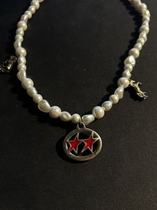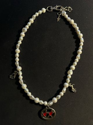Preciosa gargantilla de perlas blancas con colgantes. - Diseño exclusivo TwoJeys x Zara. - Combina perlas y encantos metálicos. - Ideal para añadir un toque elegante a tu look. No se que coj**nes esta poniendo Wallapop pero vamos que esta agotadisimo y esta to guapo, no bajo un euro o si? pregunta