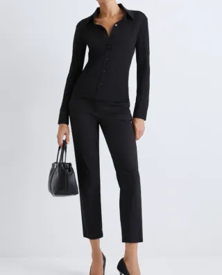 Camisa tejida de manga larga de Zara. Está entallada, muy elegante y cómoda. La tela es elástica y con efecto tejido. Está como nueva, muy bien cuidada. 📍Entrega en mano en Collado Villalba o envío.