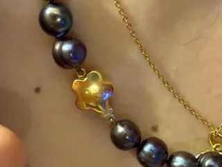 Precioso collar de oro 18k y perlas naturales iris